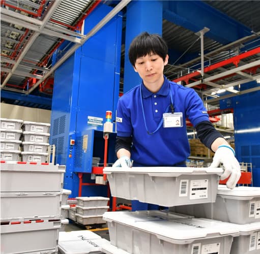 あらかじめ、商品陳列順の情報をいただくことで、棚ごとに商品を梱包し、納品します。