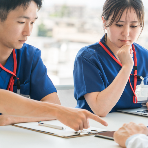 お得意様やメーカーの皆様、そして患者様をつなぐ医療の「コーディネーター」として、課題解決の提案ができるよう、高い倫理観と高度な専門知識を備えた人材を育成し、持続的な成長を支えています。
